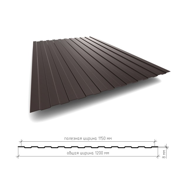 Профнастил имеет самую низкую волну в ассортименте Металлобазы Петрович. Он используется в основном при строительстве, где нет существенной ветровой нагрузки, так как не имеет достаточной жесткости по сравнению с профнастилом ПС20. Он также является незаменимым строительным продуктом для решения различных дизайнерских решений. Листы могут изготавливаться длиной от 0,5 до 12 метров.