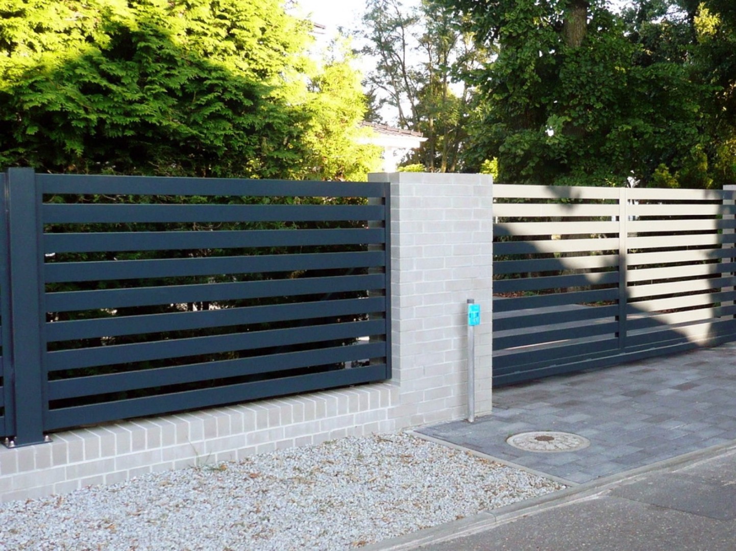 Планки легко крепятся саморезами к опорам из металла, кирпича или бетона. Такое оформление в темных тонах или в тонах под дерево выглядит очень стильно и не отвлекает внимание от основной постройки, а светлые тона акцентируют оригинальность ограждения.