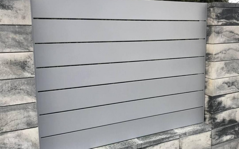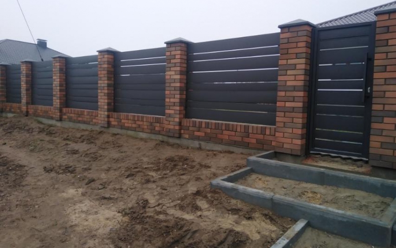 Планки легко крепятся саморезами к опорам из металла, кирпича или бетона. Такое оформление в темных тонах или в тонах под дерево выглядит очень стильно и не отвлекает внимание от основной постройки, а светлые тона акцентируют оригинальность ограждения.