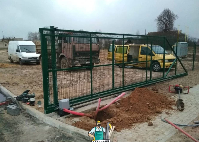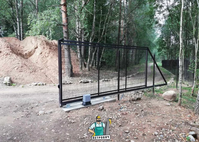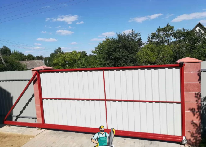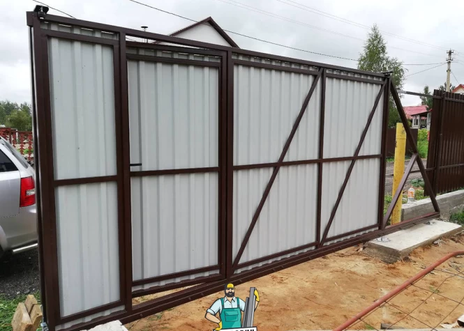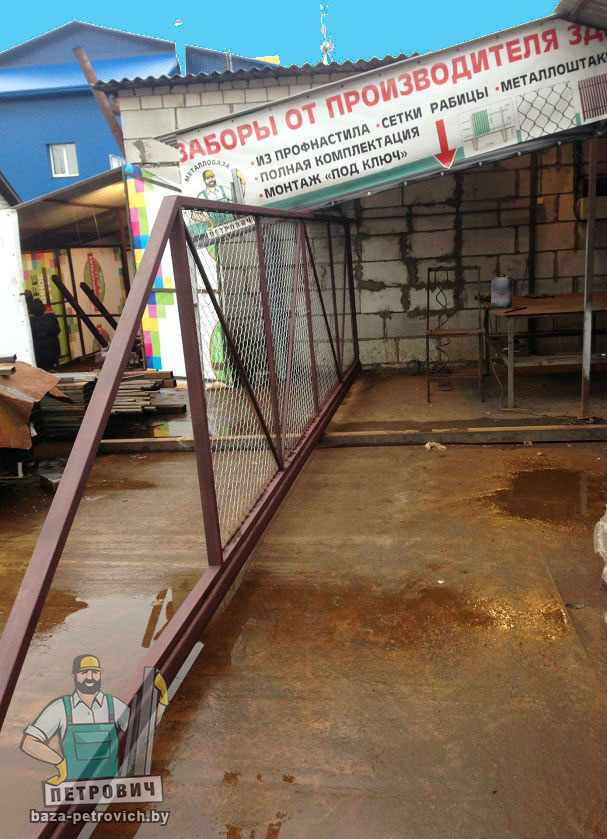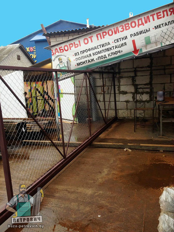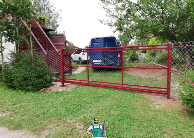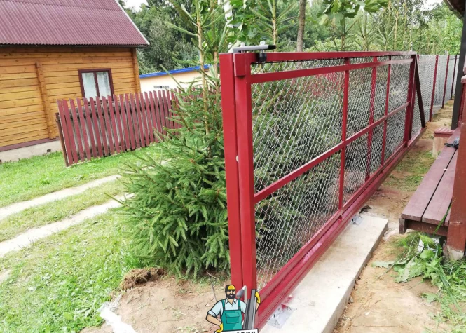 Откатные (сдвижные) ворота из сетки-рабица - вид ворот, который чаще всего используется при ограждении строительных объектов. В частном строительстве используется при наличии соответствующего забора или с целью дальнейшей переделки, ведь данных каркас подходит для зашивки любым материалом.