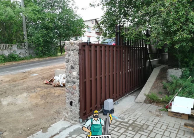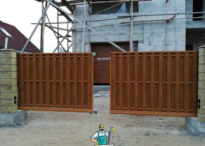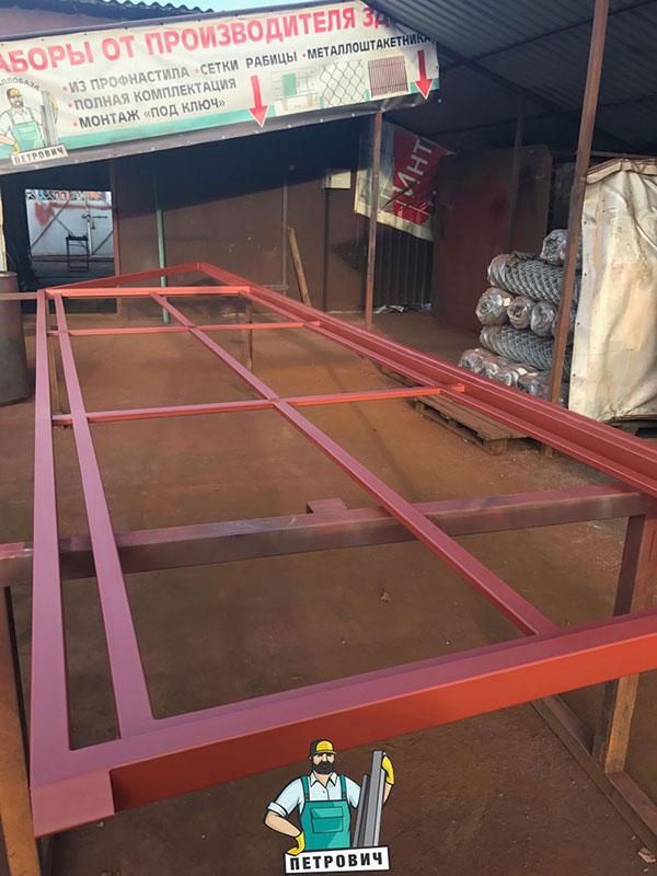 Воспользовавшись данным предложением, вы получите качественно сваренный, обработанный, загрунтованный в 2 слоя каркас, а также всю необходимую фурнитуру, необходимую для полноценного механического открытия и закрытия ворот на участке.