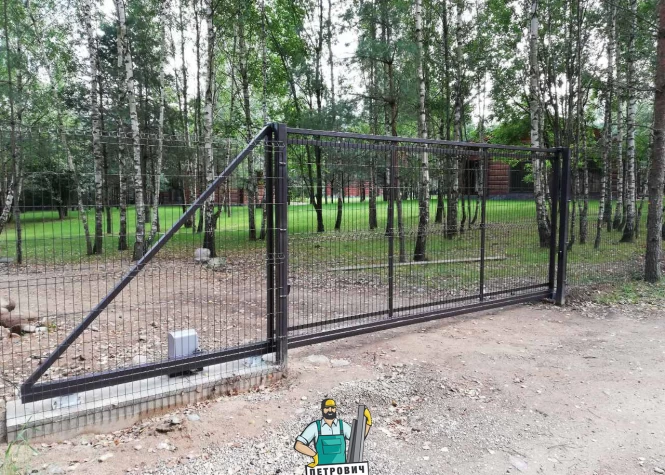 Откатные (сдвижные) ворота из 3d-сетки - вид ворот, набирающий особую популярность в последнее время за счет элегантного внешнего вида. При производстве данного изделия используется высококачественная 3d-сетка с полимерным покрытием. Сетка и сами ворота могут быть любого цвета по желанию заказчика.