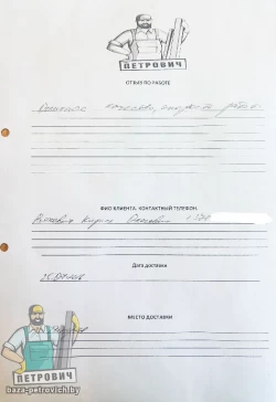 Согласование окончательной сметы и подписание договора. Предоплата за материал