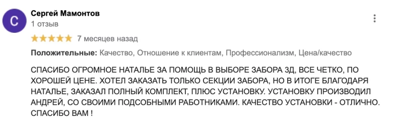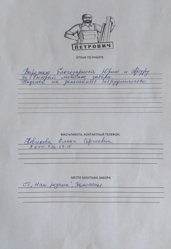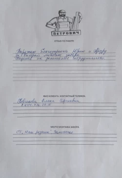 Меня зовут Петрович Сергей, и я Директор ООО "Петрович СТД"! Обращаясь в нашу компанию, вы гарантированно получаете качественный сервис, цену производителя и качество изделий, а также мою личную ответственность за каждый забор!