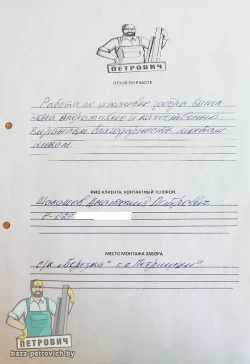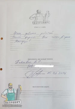 Принятие работ, окончательный расчет за материал и монтаж