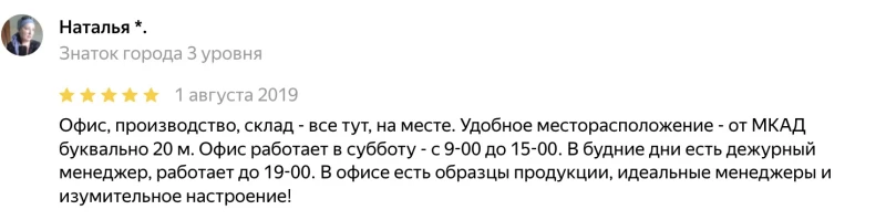 Вы сможете ознакомится с продукцией перед покупкой, поскольку склад и производство находится рядом.